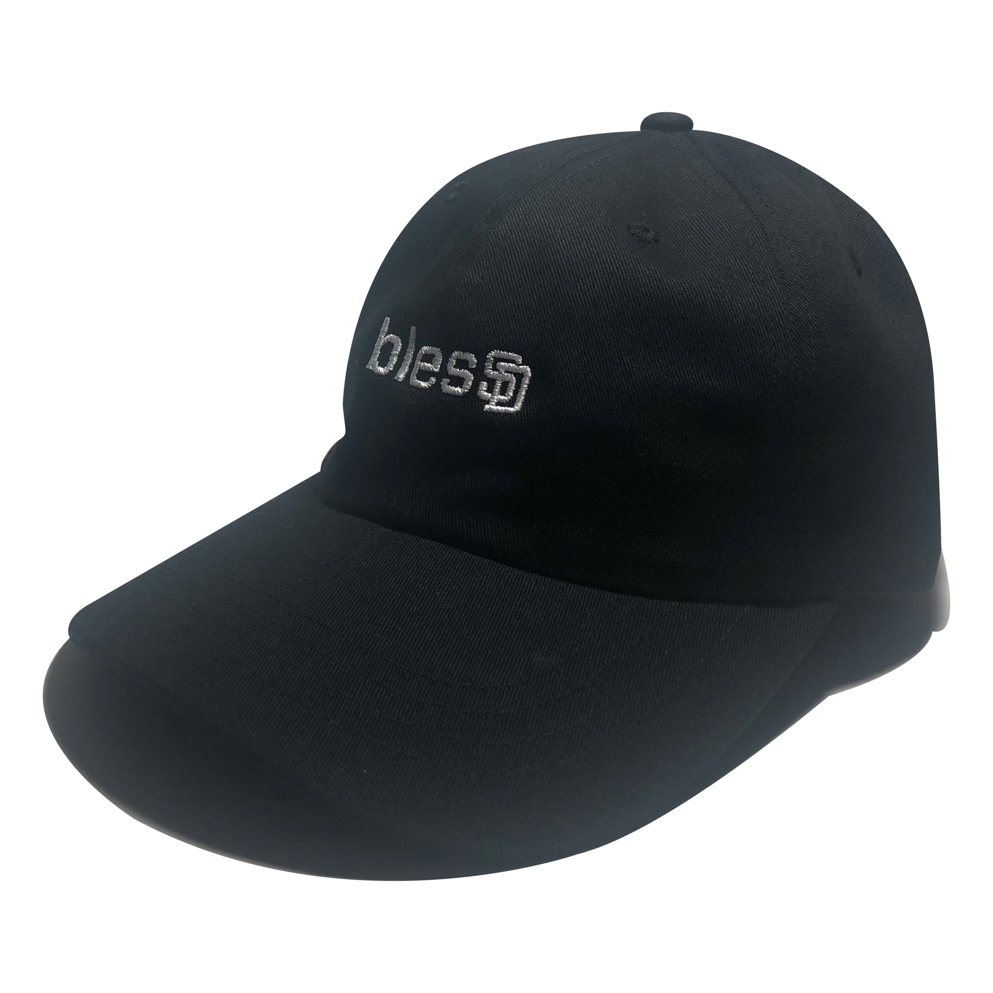 This Dad hat comes in that bold black along with our white blesSD embroidered in front.